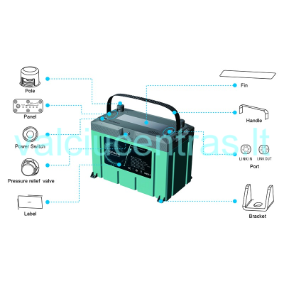 Akumuliatorių lengva transportuoti, kadangi jo svoris tik 12.5 kg, o talpa 100Ah.