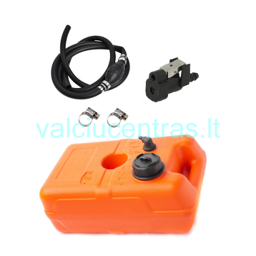 Komplektą sudaro: bakas 12l, kuro žarna su kriauše 2m, kuro jungtis į variklį, sąvaržos 2vnt.