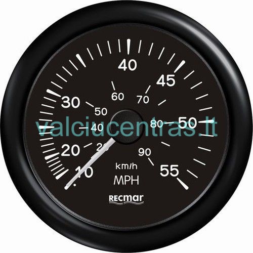 Spidometras - prietaisų skydelis rodantis greitį. Spidometro ciferblatas rodo greitį mp/h ir km/h. Skydeliai yra skirtingų rodmenų pagal rodomą greitį (km/h) - 0 - 55 ir 0 - 90. Gražaus dizaino spidometras tinkantis montuoti valties / laivo prietaisų skydelyje ar konsolėje.