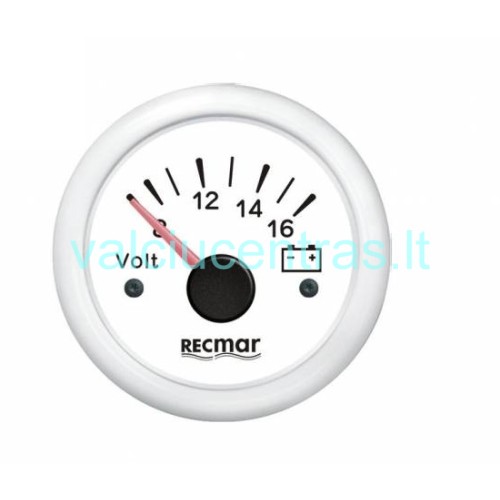RECMAR voltmetras skirtas rodyti kintamają ir nuolatinę akumuliatoriaus įtampą. Nerasojantis, atsparus vandeniui, bei su naktiniu apšvietimu. Skydelis montuojamas valites / laivo / katerio konsolėse ar penelėse šalia kitų funkcijų skydelių.