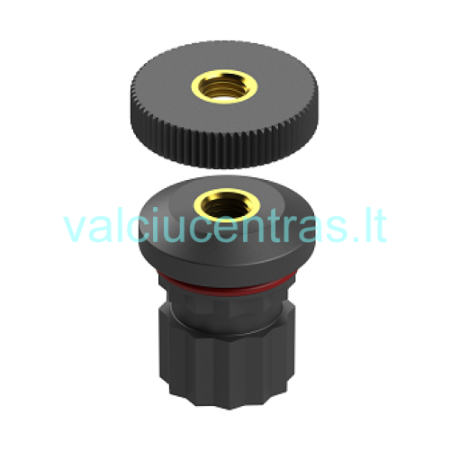 Naudojant adapterį galima prijungti kitus priedus per srieginę jungtį, kuri yra adapterio viršutinėje dalyje.
