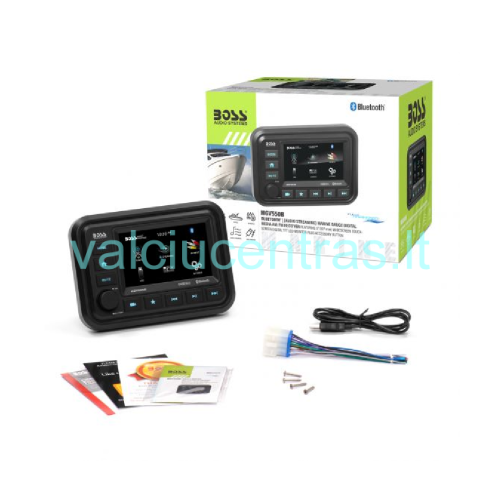 Media grotuvas BOSS AUDIO SYSTEMS MGV550B liečiamu ekranu. Tinkamas montuoti į valtis, laivus, katerius. Atsparus drėgmei.