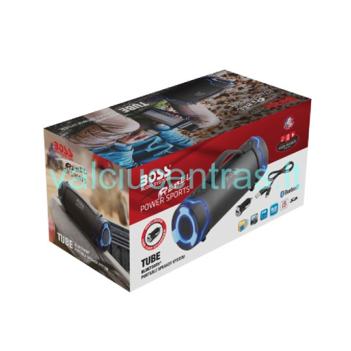 Garso kolonėlė BOSS AUDIO SYSTEMS TUBE. Nešiojama, lengva, tinka naudoti valtyje, baseine, ir kitoje drėgnoje aplinkoje, atspari lietui. Suderinama su išmaniuoju telefonu, planšetiniais kompiuteriais ir bet kuriuo įrenginiu kuris turi Bluetooth ryšį.