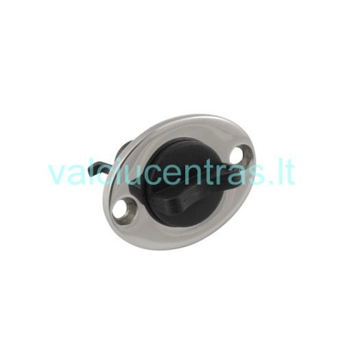 Nerūdijančio plieno drenažo kamštelis. Korpusas pagamintas iš A4 nerūdijančio plieno, dangtelis - plastikinis.