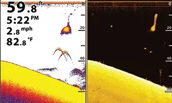 Chirp sonaras - net 3 skenavimo pasirinkimai su Chirp sonaru, žiūrėti žemiau nuotraukoje. Su Chirp sonaru nesudėtingai atskirsite smulkias, stambias ir trofėjines žuvis, matysite tai ko nerodo kiti sonarai. Atskirų objektų atskyrimas, matysite kur prasideda ir kur baigiasi vienas ir kur prasideda kitas objektas, keli objektai vienoje vietoje atskiriami, nesueina į vieną "debesį". Puikiai matysite savo masalo bei žuvies atvaizdus.