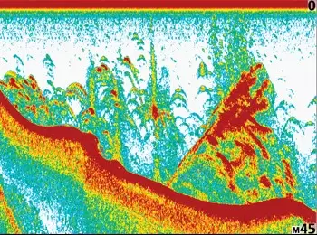 Clear mode - ypatingai išfiltruojami vandens paviršiuje esantys objektai, matykite didžiausius objektus vandenyje be jokių pašalinių smulkių trukdžių esančių šalia, dugno struktūrą (paveikslėlis kairėje).