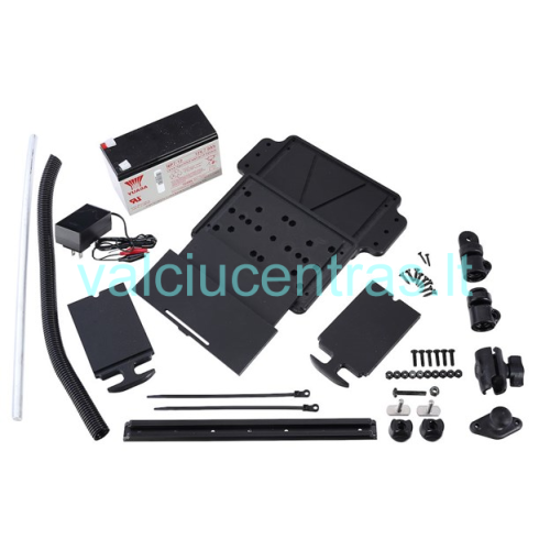 Rinkinį sudaro: baterija 6Ah 12V, įkroviklis, RAM tvirtinimo detalė, „YakAttack CellBlok“ akumuliatoriaus laikiklis,