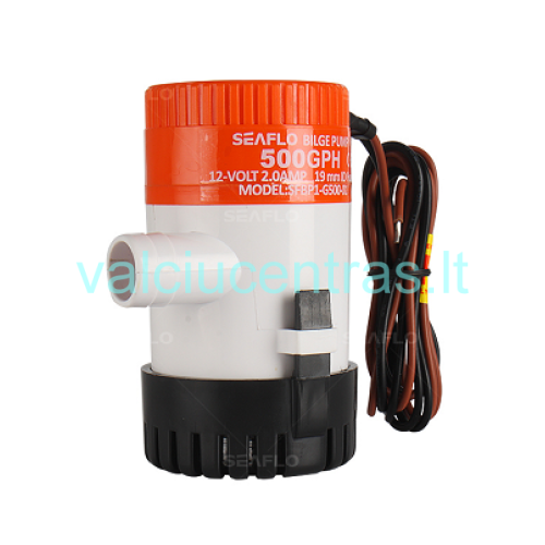 - 500 GPH - 30l/min, aukštis 107 mm, žarnos diametras 19mm, 2.2A