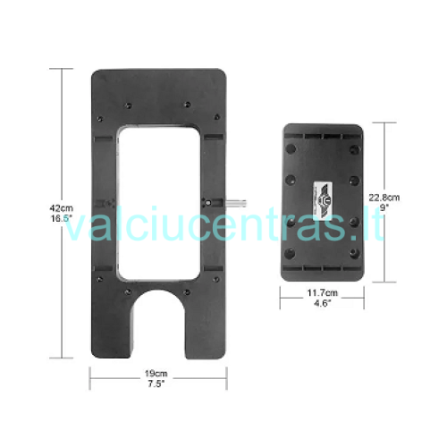 Komplektą sudaro: dvi platformos, užraktas, tvirtinimo varžtai.