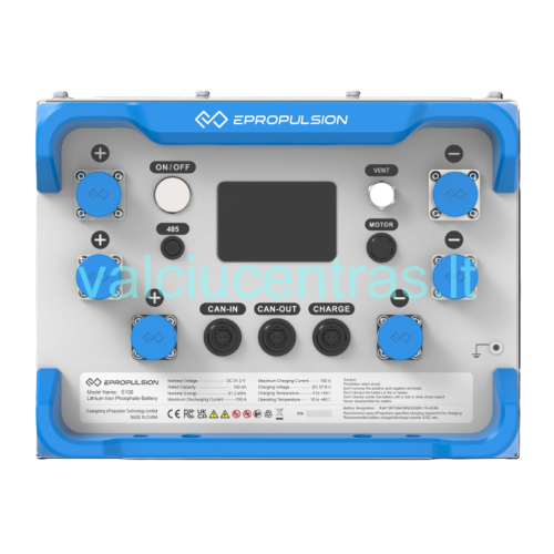 ePropulsion E100 - ličio geležies fosfato (LiFePO4) baterija. Skirta ePropulsion sistemoms, užtikrina patikimą energijos tiekimą, ilgą tarnavimo