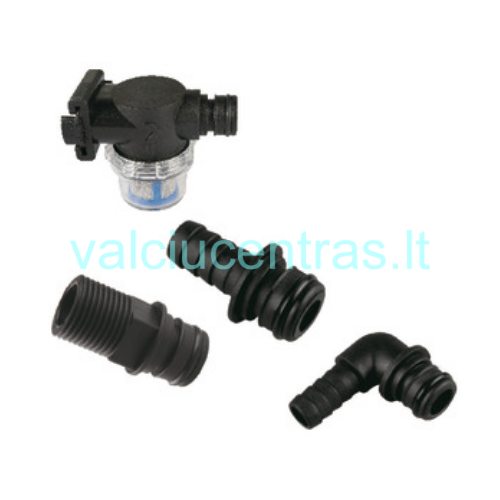 - Kampinis (90°) žarnų antgalis: 19 mm
