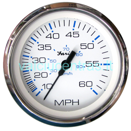 FARIA išskirtinio dizaino spidometras. Rodantis greitį iki 60 MPH ir 90 km/h. Tinkamas montuoti valčių, katerių, laivų konsolėje, arba prie kitų prietaisų skydelių.