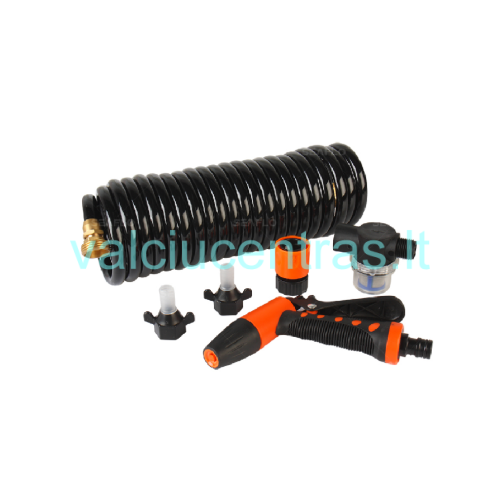 Komplektą sudaro: siurblys, plovimo žarna, maitinimo laidas, plovimo pistoletas, žarnelės antgaliai, filtras.