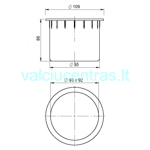 - Vidinis diametras: viršutinėje dalyje 93mm; apatinėje dalyje 92mm