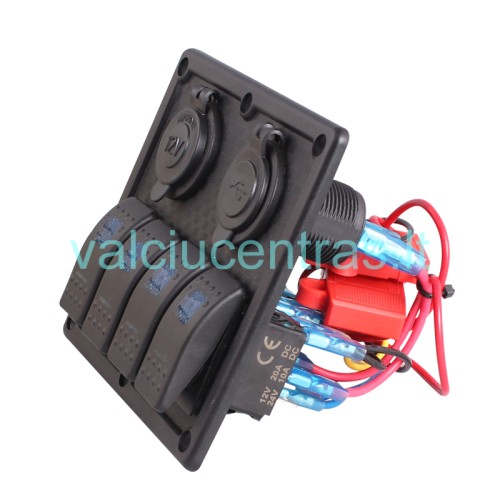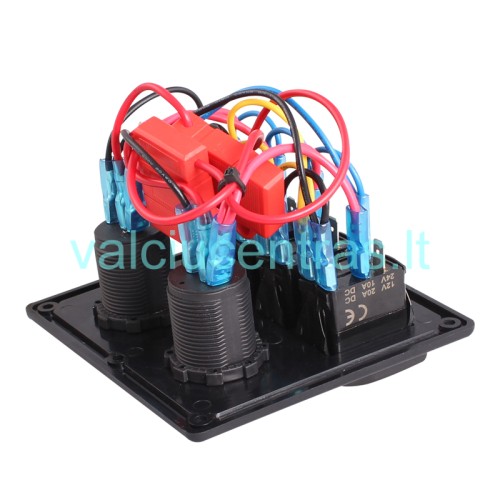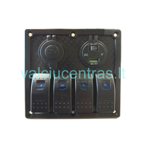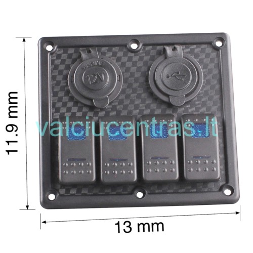 Prietaisų jungiklių skydelis su 5V USB jungtimis ir 12V/24V rozete