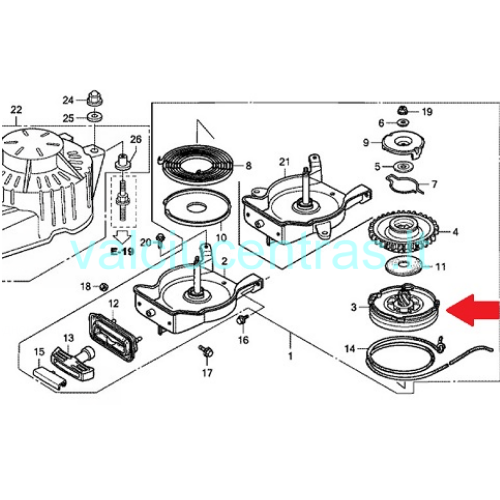 Pakabinamo Tohatsu valties, katerio variklio starteris.Tinka šiems 2T modeliams:Tohatsu: MD70B;..