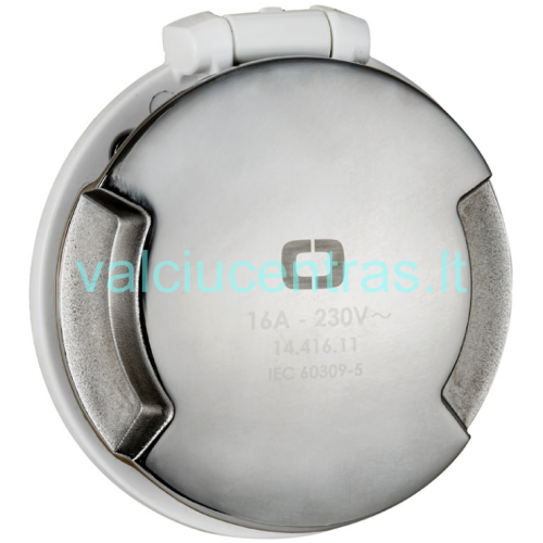 Hermeriška rozetė. Pagaminta iš aukščiausios kokybės medžiagų. Pagamintas iš tvirto PA6 nailono korpuso ir atsparaus nerūdijančio plieno (Inox) dangtelio, kuris apsaugo lizdą nuo drėgmės.