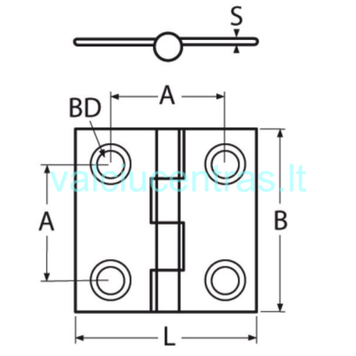 Stainless steel hinge. Made of A4 - AISI 316 stainless steel.