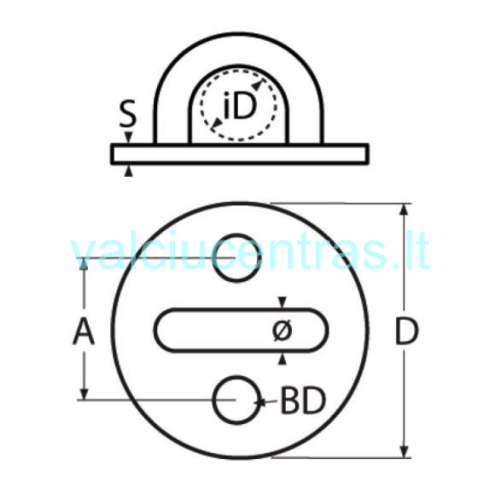 Iš nerūdijančio plieno pagaminta apvali kilpa, su dvejomis skylėmis tvirtinimui. AISI 316 nerūdijantis plienas. Juodos spalvos.