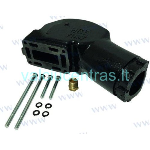 Išmetimo kolektoriaus alkūnė, tinkanti Volvo Penta V6 3.8 - 4.3L varikliams, pagamintiems iki 1994 metų. Komplekte yra viskas, kas reikalinga montavimui.