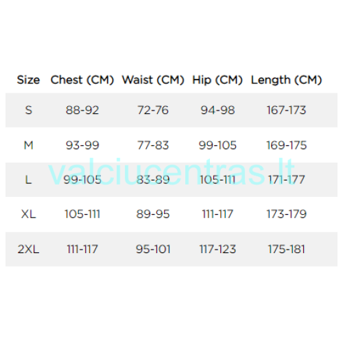 Dydžiai: XS - 2XL