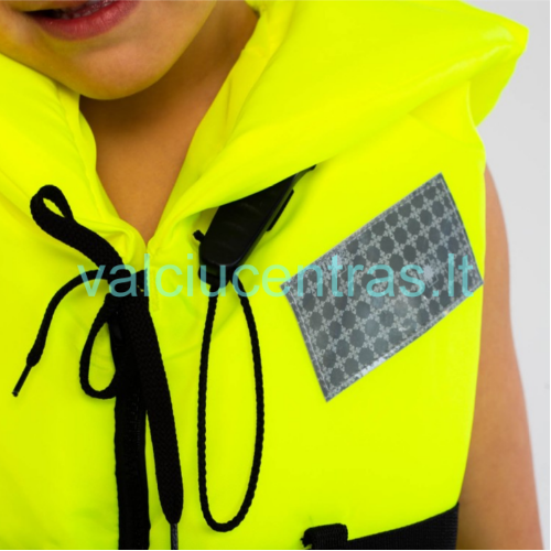 - Trys tvirti YKK užsegimai ir reguliuojami dirželiai, kurie leidžia pritaikyti liemenę pagal kiekvieno naudotojo poreikius.