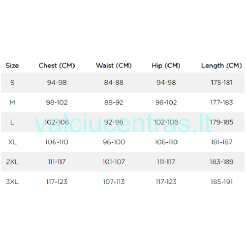 Krūtinės ir nugaros dalyje neopreno storis 3mm. kitose dalyse 2mm.