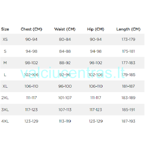 Krūtinės ir nugaros dalyje neopreno storis 3mm. kitose dalyse 2mm.
