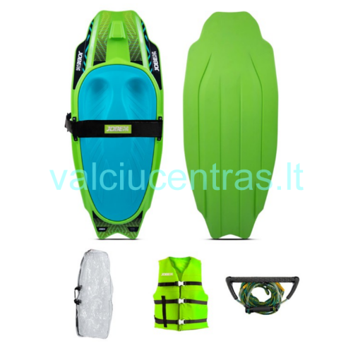 Komplektą sudaro: Jobe Slash kelių lenta, permatomas lentos nešimo krepšys, gelbėjimosi liemenė, tempimo virvė