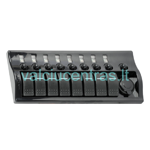 Šviečiantis jungiklių skydelis 12V. Pagamintas iš tvirto plastiko, atsparus vandeniui.