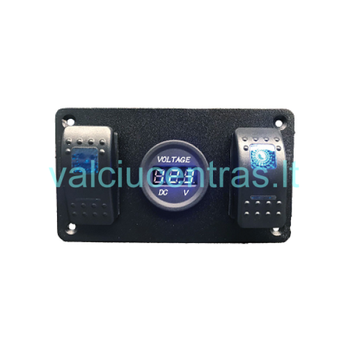 Prietaisų skydelis su 2 jungikliais ir voltmetru.