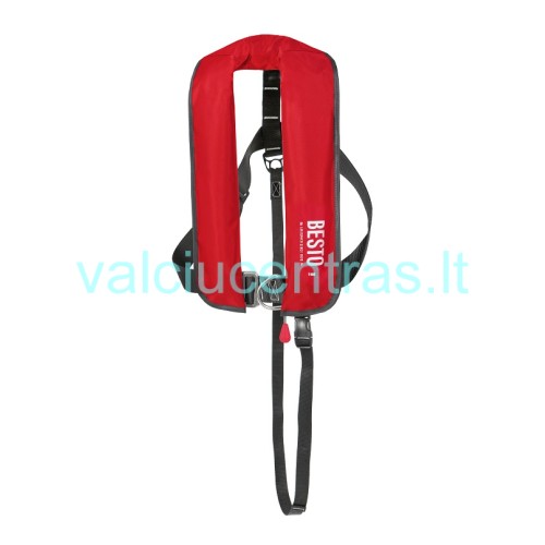 Besto 165N prisipučianti liemenė puikiai prisitaiko prie kūno, bei turi specialią apykaklę, didesniam saugumui. Apykaklė patogiai priglunda prie sprando bei tvirtai laiko galvą, išsiskleidus liemenei. Besto gelbėjimosi liemenė yra su dirželiu kuris saugo per kirkšnį nuo išsimovimo. Per kraštus išsiskleidžia gelbėjimo plūdurai.