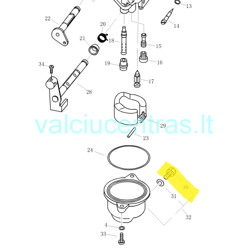 Karbiuratoriaus detalė - išleidimo varžtas Parsun F4/F5