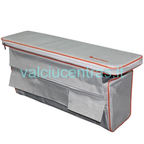 Itin tvirta ir vandeniui atspari medžiaga. Lipnių juostų pagalba lengvai pritvirtinsite krepšį prie suoliuko. Tinka tiek fanieros tiek aliuminio valties sėdynėms. Krepšys kabinasi po sėdyne, todėl neužima daug vietos valtyje. Yra kišenės ir atskiras skyrius daiktams susidėti.