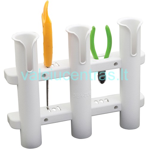 Puikus pasirinkimas norint sutaupyti vietos, laikiklis pagamintas iš itin tvirto plastiko. Galima ne tik meškeres susidėti, bet ir žvejybos įrankius, bei kitus reikmenis.