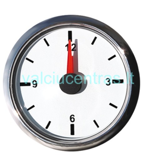 Išskirtinio dizaino laikrodis. Tinkantis montuoti į valties / laivo panėlę ar konsolę. Rodyklės valandų, minučių. Nerūdijančio plieno lankelis, nerasojantis viduje ir turintis naktinį apšvietimą.