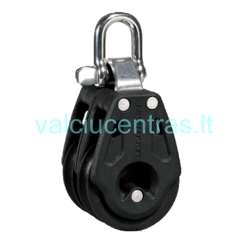 LEWMAR dvigubas virvės blokas su šekeliu 30mm. Šoninės plokštelės pagamintos iš tvirto plastiko, šekelis iš nerūdijančio plieno.
