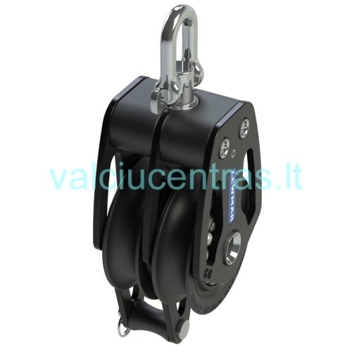 LEWMAR dvigubas blokas su šekeliu ir kilpa 50-60mm. Šoninės plokštelės pagamintos iš tvirto aliuminio, šekelis ir kilpa iš nerūdijančio plieno.