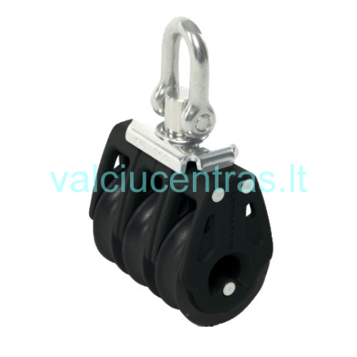 LEWMAR trigubas virvės blokas su šekeliu 30mm. Šoninės plokštelės pagamintos iš tvirto plastiko, šekelis iš nerūdijančio plieno.
