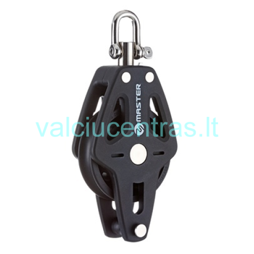 Master viengubas blokas su šekeliu ir kilpa 50mm. Šoninė plokštelė pagaminta iš tvirto plastiko; guolis ir šekelis iš AISI 316 nerūdijančio plieno.