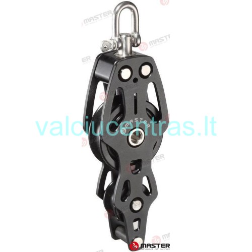 Master viengubas pasukamas blokas su kilpa papildomu ratuku ir šekeliu 50mm. Šoninės plokštelės pagamintos iš aliuminio; šekelis iš AISI 316 nerūdijančio plieno.