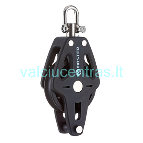 Master viengubas pasukamas blokas su kilpa ir šekeliu 72mm. Šoninė plokštelė pagaminta iš tvirto plastiko, kuris atsparus UV spinduliams; šekelis ir guolis iš AISI 316 nerūdijančio plieno.