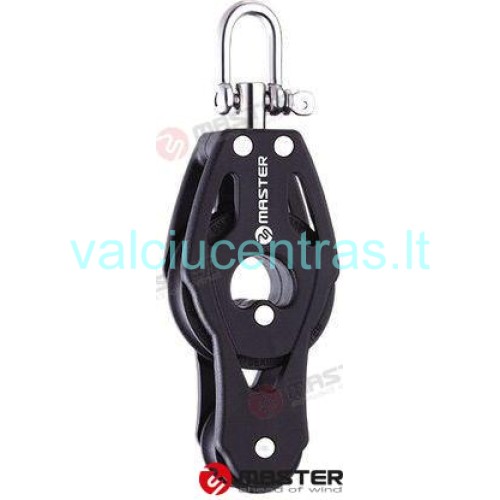 Master viengubas pasukamas blokas su apkaba 40mm. Šoninė plokštelė pagaminta iš tvirto plastiko atsparaus UV spinduliams, o šekelis ir kilpa iš AISI 316 nerūdijančio plieno.
