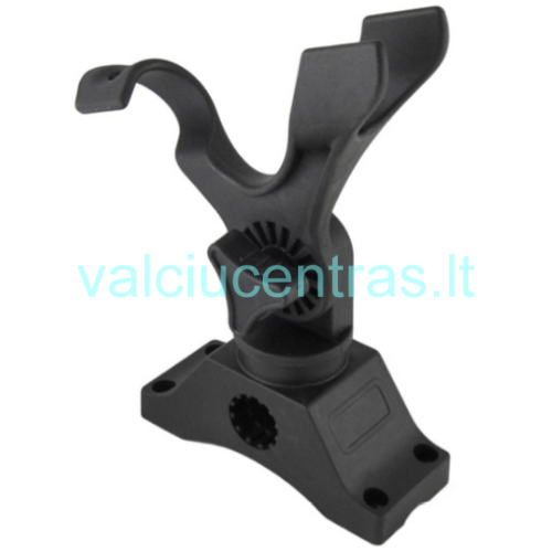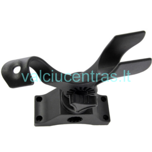 Meškerės laikiklis, pagamintas iš aukštos kokybės „Titan“ plastiko. Gali būti tvirtinamas horizontalioje ir vertikalioje padėtyje, lengvai nuimamas. Reguliuojamas pasukimo, pakrypimo kampas.