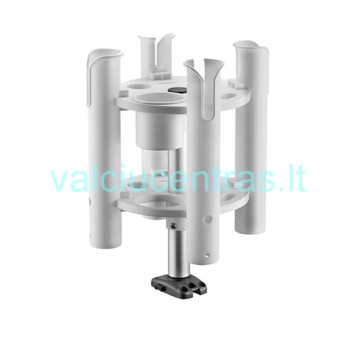 Išimamas 4 meškerių laikiklis yra pagamintas iš itin tvirto plastiko. Laikiklis su nuimama platforma, kuri yra universali. Lengvai tvirtinamas, bei ardomas. Yra puodelių, kitų daiktų laikiklis. Komplekte yra tvirtinimo detalės.