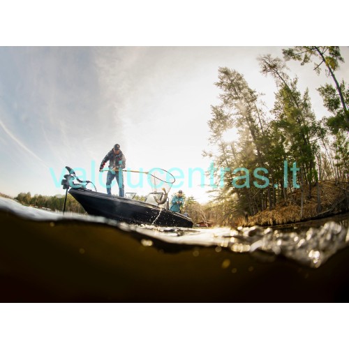 Komplektacija - Terrova 112lbs GPS variklis su Dual Spectrum CHIRP sonaru, bevieliu pultu, pavadėliu, kojiniu pultu, sraigtu MKP-38 ir tvirtinimo elementais.