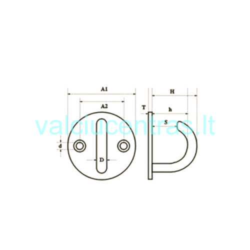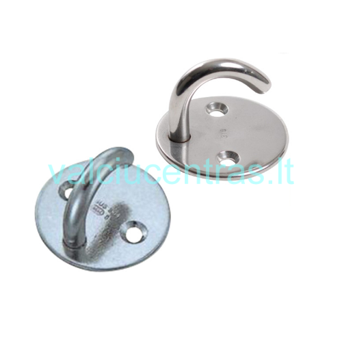 Apvalus nerūdijančio plieno tvirtinimo pagrindas su kabliuku, skirtas lynų, trosų ar kitų priedų fiksavimui valtyje. Pagamintas iš AISI 316 nerūdijančio plieno, užtikrina atsparumą korozijai ir ilgaamžiškumą.