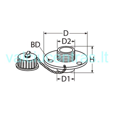 Vandens išleidimo detalė su dangteliu, pagaminta iš A4 nerūdijančio plieno.Išmatavimai:Diametras (BD..