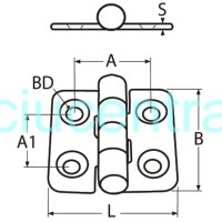 A4 nerūdijančio plieno lankstas 37x37.5mm