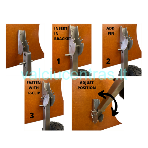 Nerūdijančio plieno ratukų padėtis gali būti: užlenkti aukštyn(turi 3 padėtis), nuleisti žemyn arba visiškai nuimami.